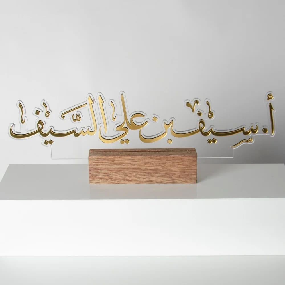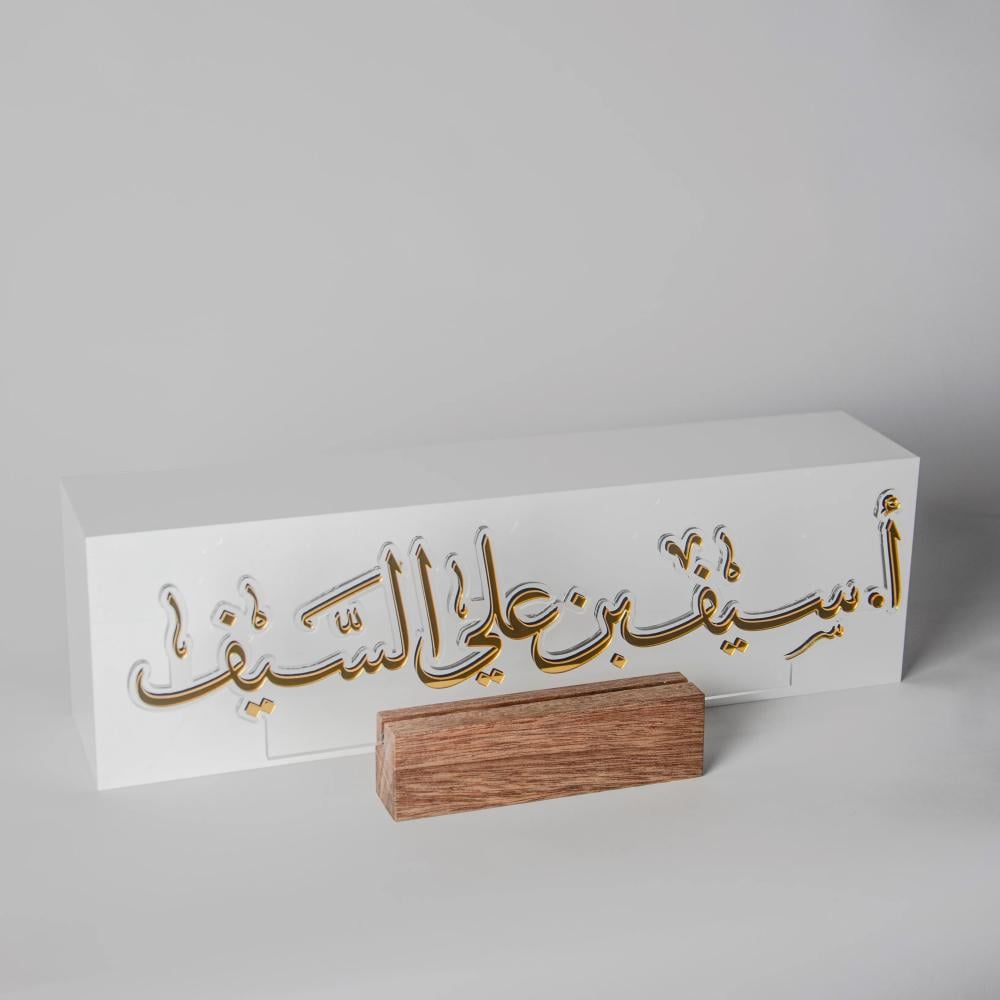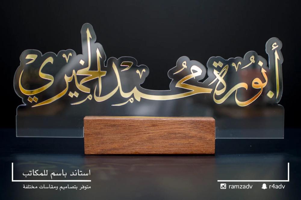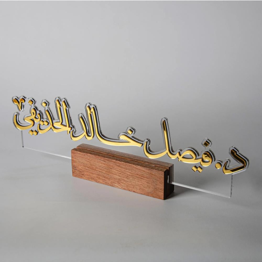 رمز على مكتبك.. استاند مكتبي بالاسم بقاعدة تم تصميمها بفخامة من خلال دمج الخشب والأكريليك بطريقة مرنة و أنيقة