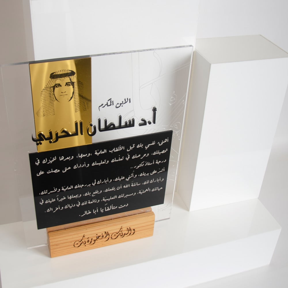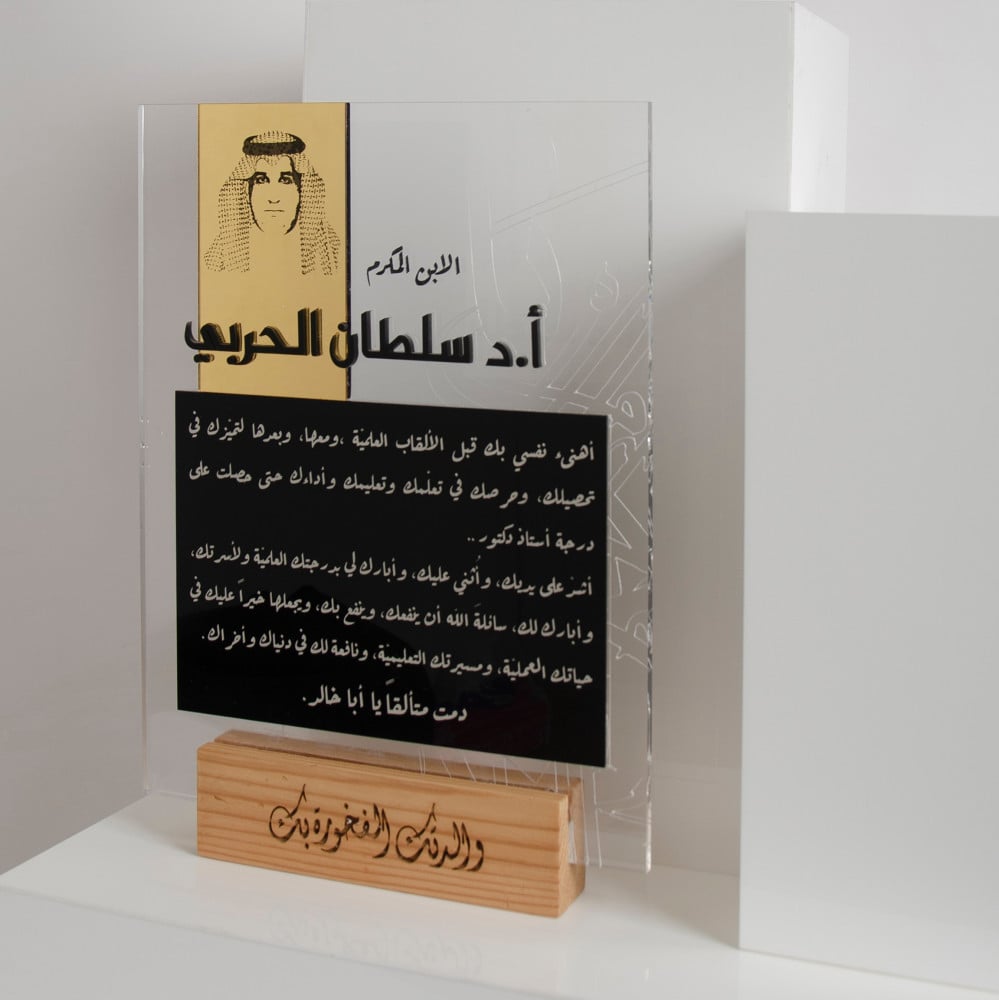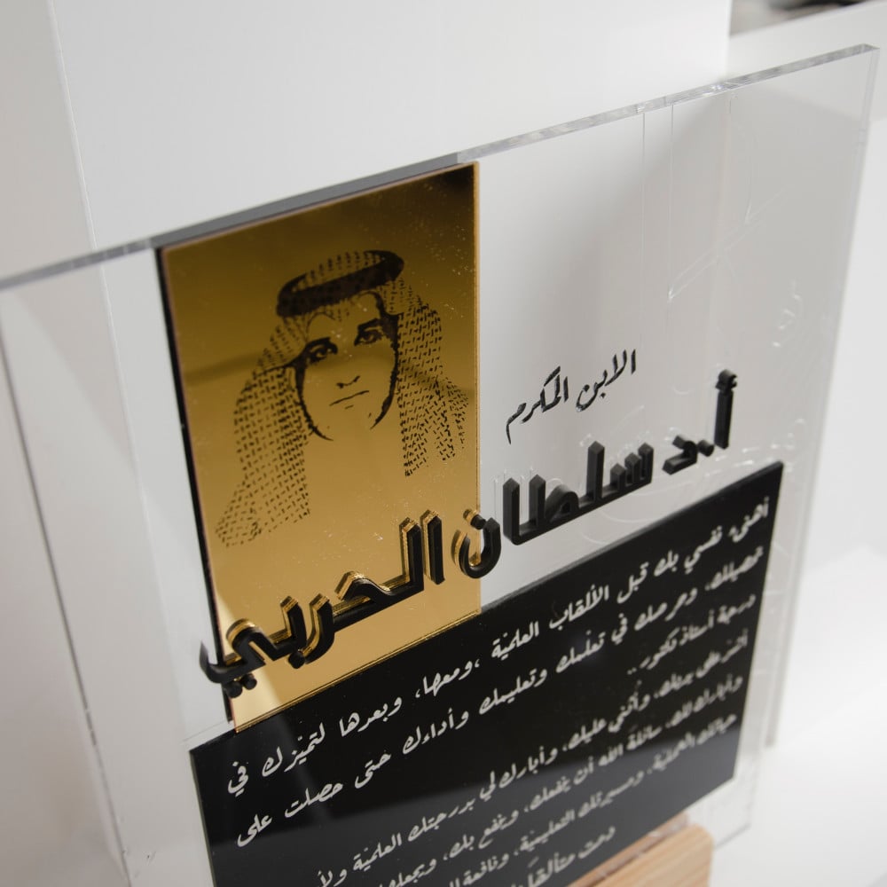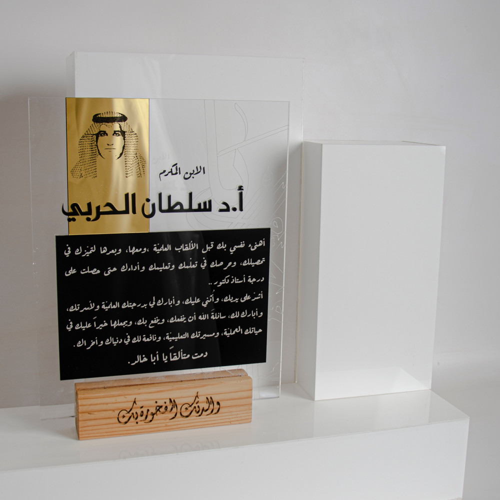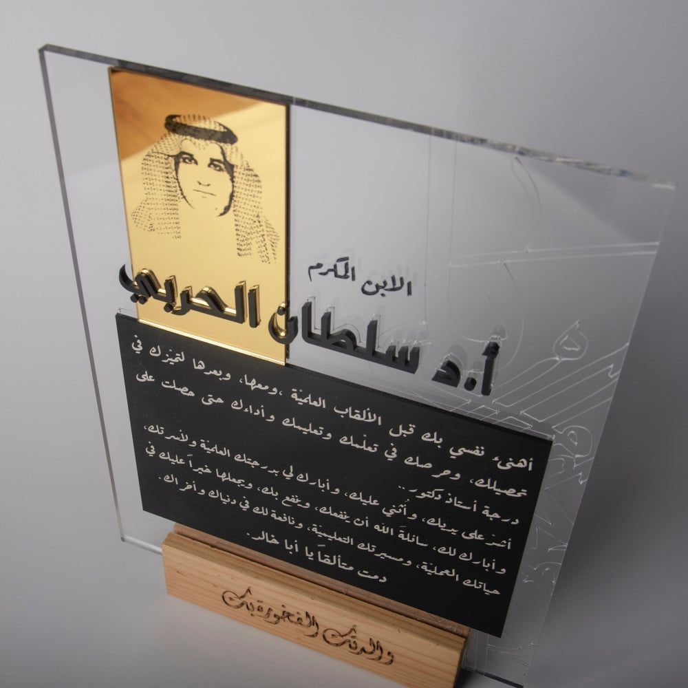 درع تم تصميمه ليكون الخيار الأمثل للتعبير عن الفخر.. يليق بحجم وفرحة الإنجاز! تنوع الخامات يميّزه، وإضافة صورة صاحب الحدث تجعل منه ذكرى لا تنسى💌