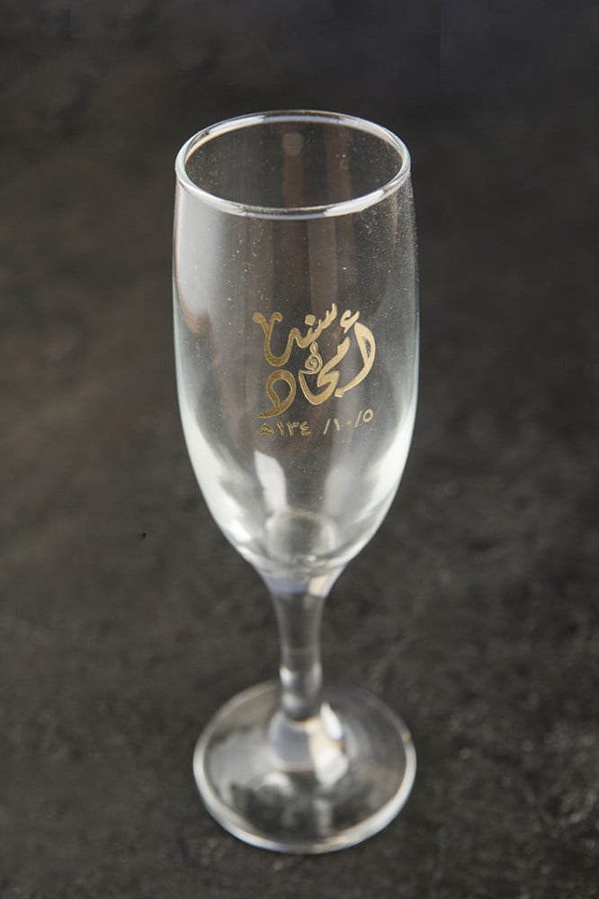 كأسي عصير مع حفر أسماء العروسين